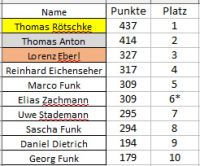 Hier nun die Ergebnissliste unserer Vereinsmeisterschaft